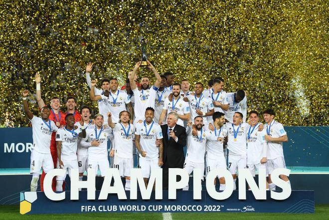 唯彩看球讯 北京时间2月12日凌晨3点,2023年世俱杯决赛,皇家马德里对阵利雅得新月。上半场维尼修斯和巴尔韦德破门,马雷加扳回一城,下半场本泽马和巴尔韦德扩大比分,维尼修斯两射一传,维耶托连扳两球。最终皇家马德里5-3战胜利雅得新月,皇马队史第5次夺得世俱杯冠军,俱乐部冠军数达到100座。