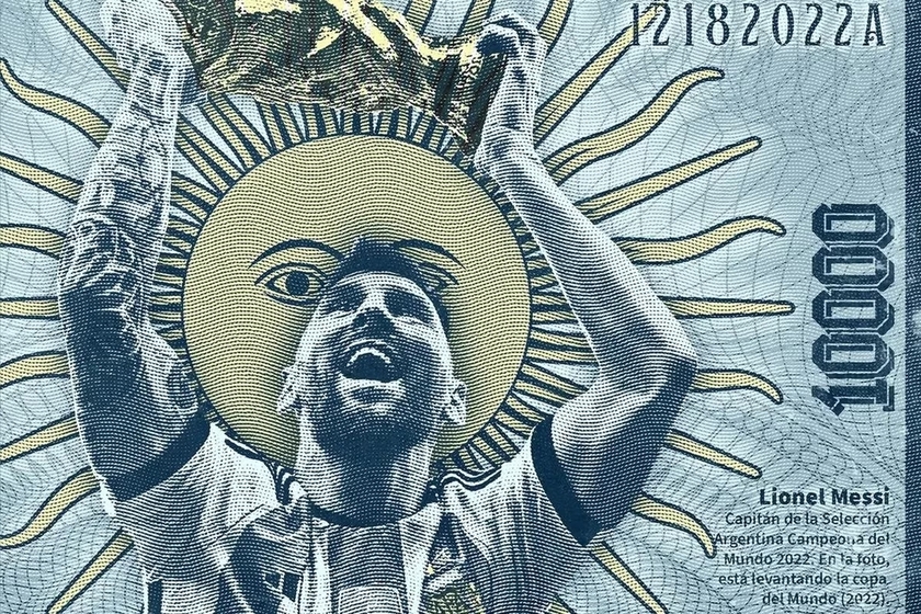 唯彩看球讯 据阿根廷媒体“LA NACION”报道,阿根廷中央银行考虑发行1万比索的纸币,并提议在纸币上印阿根廷队长梅西的头像。