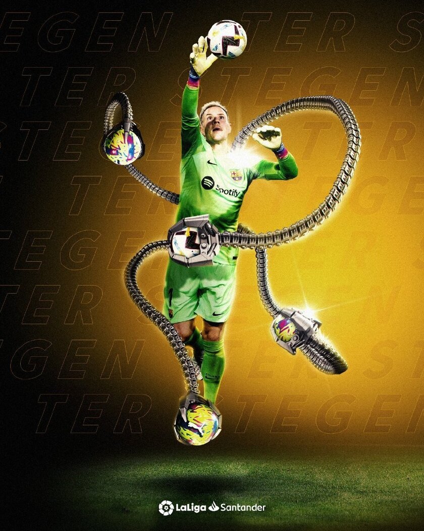 巴萨门将特尔施特根同时成为五大联赛丢球最少、联赛场均丢球数最少、五大联赛零封最多的门将!