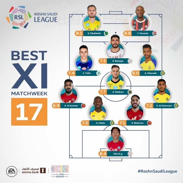 唯彩看球讯 沙特联赛公布了第17轮最佳阵容,在对阵布赖代合作的比赛中,C罗助攻双响,但仍然无缘最佳阵容。