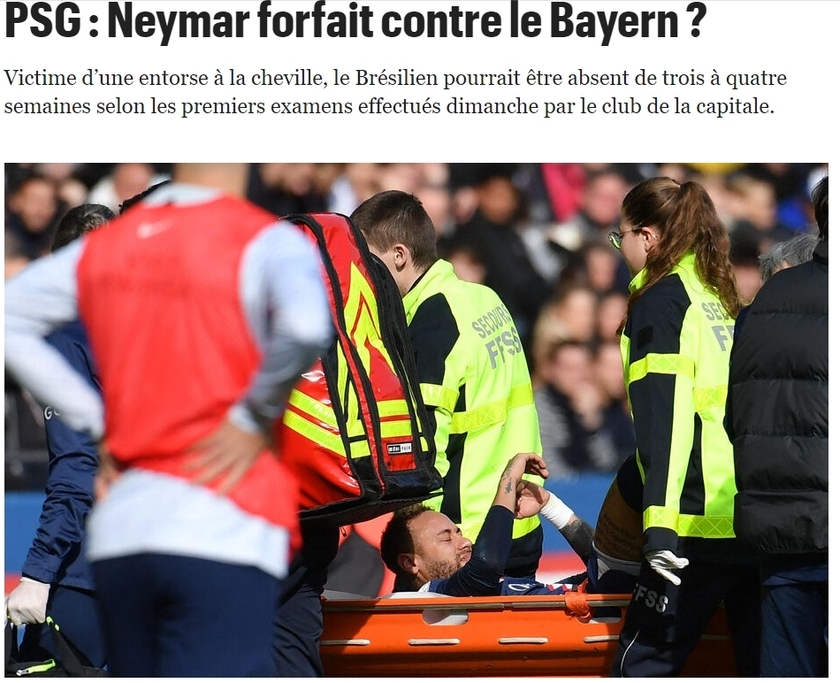 第一次检查结果显示,内马尔的脚踝韧带部分撕裂,巴黎内部估计球员伤缺的时间为3-4周。