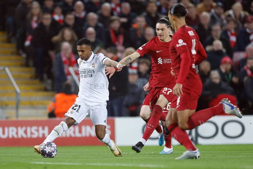 唯彩看球讯 皇马在欧冠1/8决赛首回合比赛中客场5比2逆转利物浦,但罗德里戈和阿拉巴在比赛中受伤。