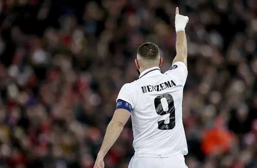 唯彩看球讯 在欧冠1/8决赛首回合比赛中,本泽马梅开二度,帮助皇马客场5比2击败利物浦。