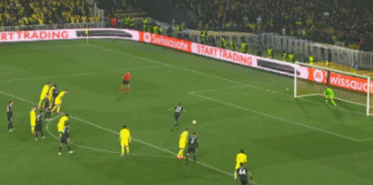 第17分钟,迪马利亚禁区右侧拿球,突破到底线前,过掉门将再脚后跟打门,球打在帕洛伊斯的手臂上,主裁判指向点球点,帕罗伊斯手球犯规被直接红牌罚下,尤文获得点球机会,迪马利亚一蹴而就,2-0!