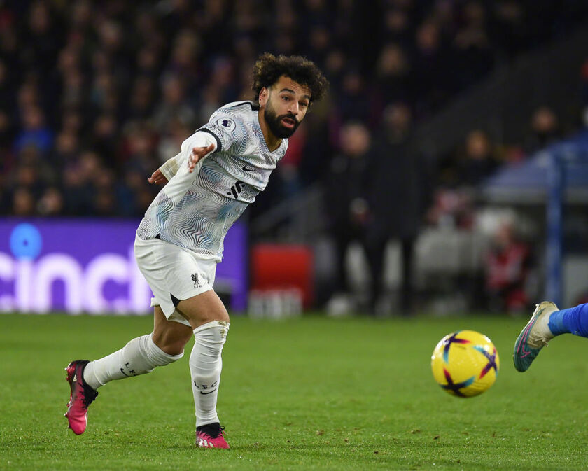 萨拉赫下半场曾有一次射门击中了水晶宫的横梁,遗憾错失进球。