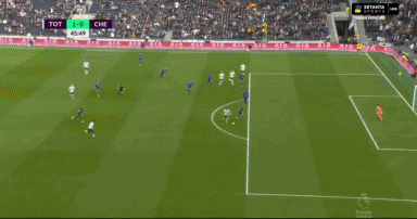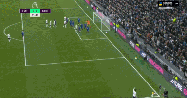 第45分钟库卢塞夫斯基直塞,埃莫森插上右肋12码处射门,凯帕扑了下后本来能压住球,但恩佐抢了球后解围没踢远,斯基普停下球后偏右22码处右脚劲射,凯帕碰到了球但球还是碰横梁飞入右上角,热刺1-0领先。