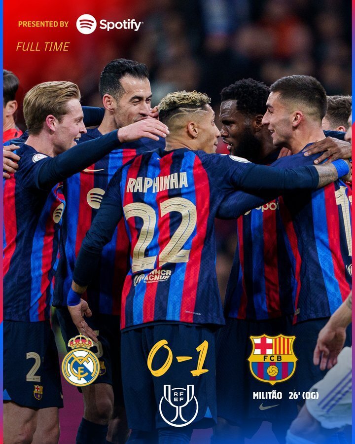 唯彩看球讯北京时间3月3日凌晨4时,西班牙国王杯半决赛首回合,皇马主场0-1负于巴萨。第26分钟,米利唐不慎将球挡进自家球门。半决赛次回合将在4月6日进行。