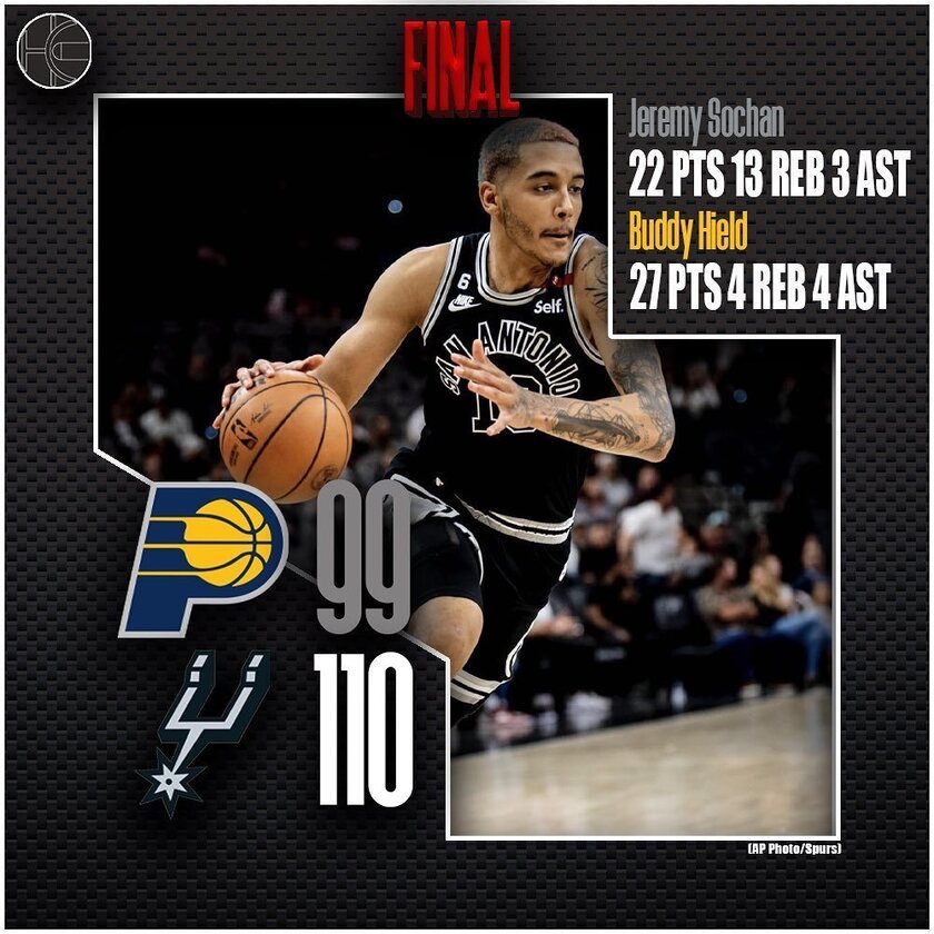 下半场,步行者突然断电,索汉联手瓦塞尔帮助马刺顺势一波11-0直接反超比分并掌握双位数领先,随后双方展开拉锯战,希尔德接连扔进中远距离一波8-0缩至差10分,但马刺一直保持住领先,最终马刺110-99力克步行者,拿到2连胜。