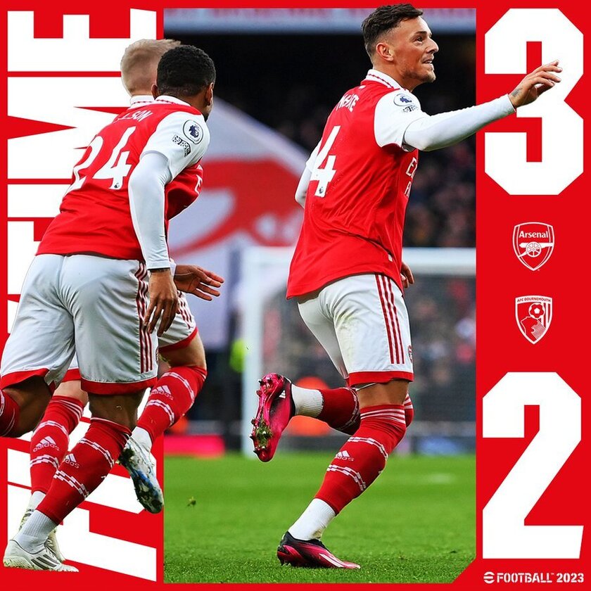 比赛结束,阿森纳3-2战胜伯恩茅斯。