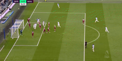 第53分钟,布莱顿前场右侧开出角球,前点麦卡利斯特头球蹭到后点,门前费尔特曼用胸口将球撞进大门,布莱顿将领先优势扩大到两球。