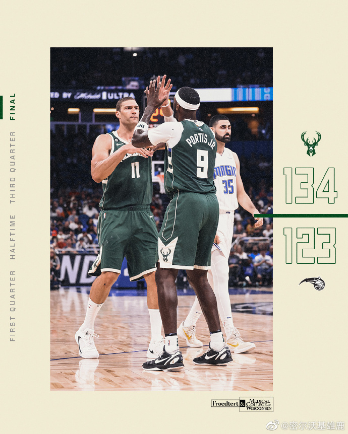 下半场双方继续对攻,雄鹿牢牢保持住双位数领先,魔术外线始终不开追分很困难,雄鹿牢牢保持住双位数领先,最终残阵雄鹿134-123力克魔术。