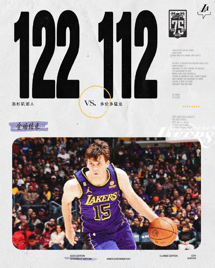 下半场回来场上局势突变,湖人状态全无被对手打出19-2的攻势迅速让出领先,但末节里夫斯和拉塞尔两人同时爆发带队打出一波流,之后的比赛猛龙没有再获得机会,最终湖人力克猛龙,迎来三连胜的同时也送给对手三连败。