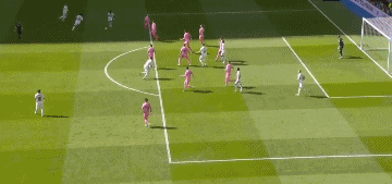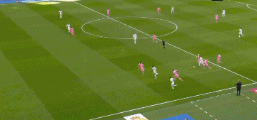 第39分钟,皇马开出角球,琼阿梅尼在禁区左侧外脚背挑传,米利唐头球破门,皇马2-1!