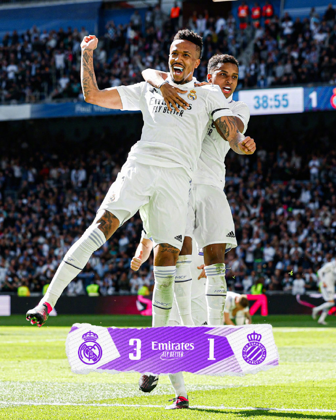 全场比赛结束,皇马主场3-1战胜西班牙人。