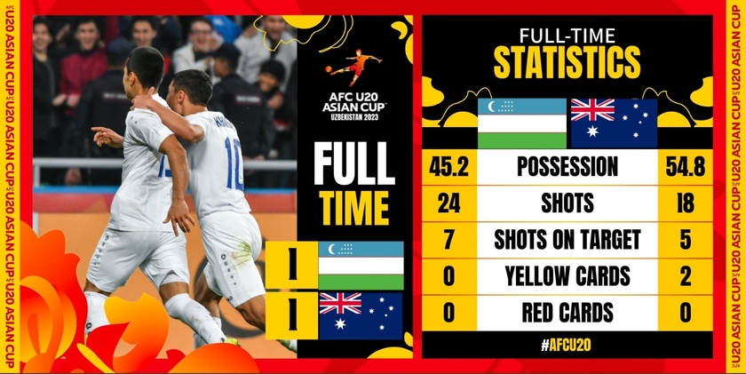 乌兹别克斯坦6-5澳大利亚比赛中,波波维奇为澳大利亚先拔头筹,阿卜迪拉赫马托夫为乌兹别克扳平比分,常规时间双方战成1-1。双方加时赛互交白卷后,乌兹别克斯坦5-4点球击败澳大利亚。
