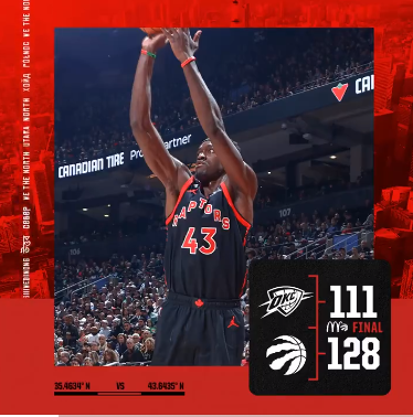 休息归来猛龙延续外线手感,上来又是两记三分将优势扩大至两位数接管比赛,这波攻势奠定了猛龙随后一路维持在10分左右的领先局面,末节随着猛龙一波13-2的攻势,分差被拉大至20分彻底失去悬念。最终,猛龙主场击败雷霆拿下比赛。