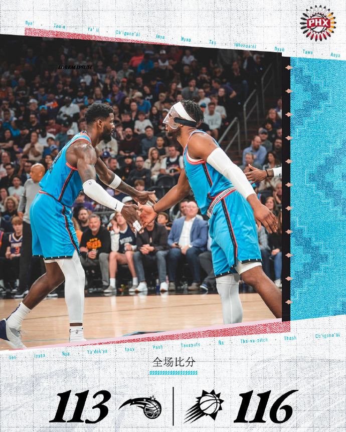 下半场回来,布克突然发力单节独得11分,富尔茨连续突破强势回应,三节结束后太阳保持9分优势,末节上来,魔术延续追分势头一度抹平分差,但布克和奥科吉联手回应,决胜时刻保罗连进跳投,富尔茨连中罚球保留悬念,罗斯关键两罚稳稳命中,小瓦格纳绝平三分遭奥科吉大帽拒绝,最终太阳116-113险胜对手终结三连败。