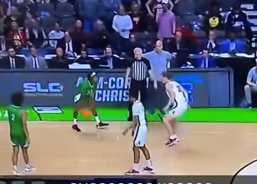 在比赛最后垃圾时间,比分96-72,双方都决定放弃最后10秒钟不打,一位23号得州农工大学球员突然从队友手中要过球开始单打,防守人也过来,一次没成功,他又二次进攻,最终轰进了一记三分球,场边的教练面色铁青。