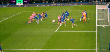 第69分钟,麦克尼尔开出角球,塔科夫斯基头球摆渡,门前杜库雷头球接力攻门,哈弗茨解围,不过皮球已经整体越过球门线,1-1,埃弗顿追平了比分。