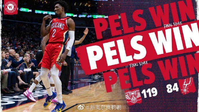 下半场,格拉汉姆终于从马刺替补席站出来,但英格拉姆单节16分也能强势给出回应,末节鹈鹕直接将分差拉开至30分以上,比赛失去悬念,双方换上替补练兵,最终鹈鹕119-84轻取马刺。