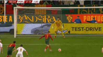 C罗主罚,右脚推射打球门左侧得分,葡萄牙3-0领先对手。