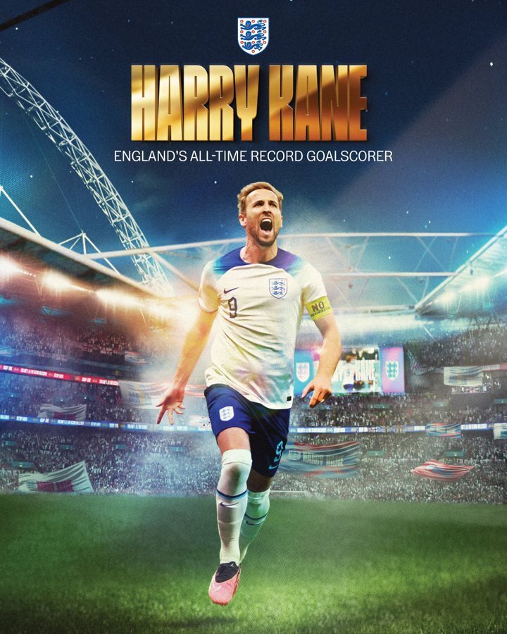 这是凯恩为英格兰打进的第54球,凯恩超越打进53球的鲁尼,成为英格兰队史射手王。