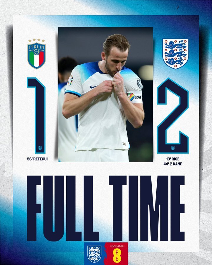 唯彩看球讯北京时间3月24日凌晨3点45分,2024年欧洲杯预选赛C组展开首轮对决,意大利坐镇主场迎战英格兰。上半场比赛凯恩射门被封堵后赖斯补射破门,迪洛伦佐禁区内手球送点,凯恩罚进点球成为英格兰队史射手王,格拉利什错失空门。下半场比赛雷特吉在国家队首秀中打进国家队处子球为意大利扳回一球,卢克肖两分钟内连领两张黄牌被罚下。最终英格兰2-1战胜意大利,取得欧预赛开门红。