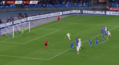 下半场两队易边再战,第56分钟,马奎尔后场出球被迪洛伦佐拦截,巴雷拉横敲,维拉蒂分球到弧顶前,佩莱格里尼斜传禁区,雷特吉跟上抽射破门,1-2,意大利扳回一球,这是雷特吉的国家队处子球。