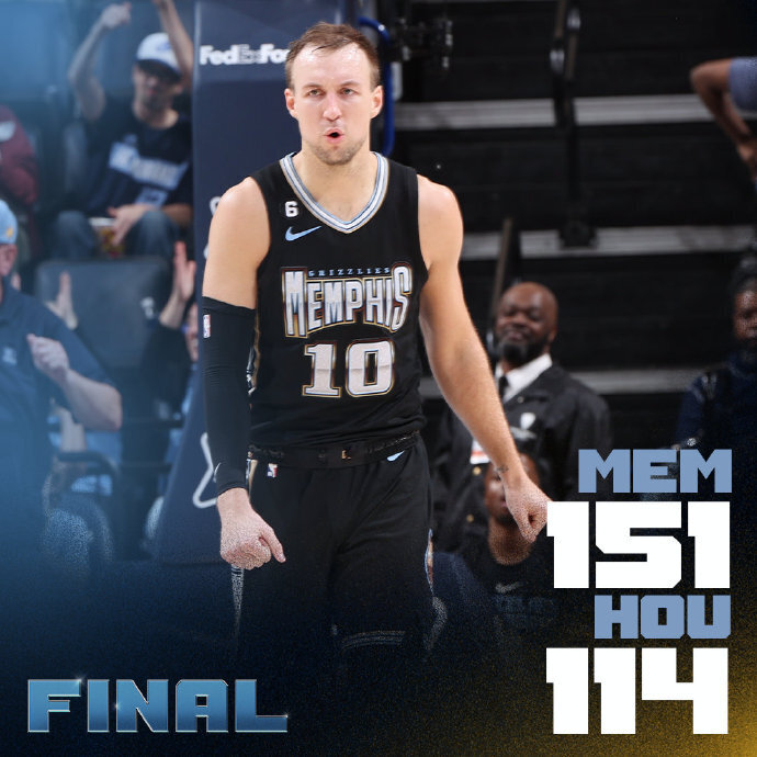 灰熊(46-27):肯纳德30分3助,贝恩25分4板2断,莫兰特18分8助,洛夫顿11分3助2断,布鲁克斯11分,杰克逊18分7板2助2断2帽,蒂尔曼8分4板2断,琼斯11分3板9助,阿尔达玛8分6板,罗迪4分,钱德勒4分3助,康查尔3分3板。