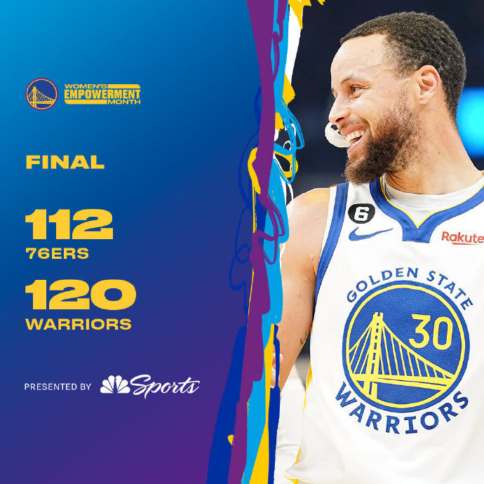 易边再战,勇士命中率下降,恩比德制霸内线率队将分差拉开到两位数,勇士及时回暖不断蚕食分差并完成反超,此后双方争夺陷入白热化,关键时刻勇士内外开花连续拿分杀死比赛。最终,勇士120-112力克76人,主场过关。