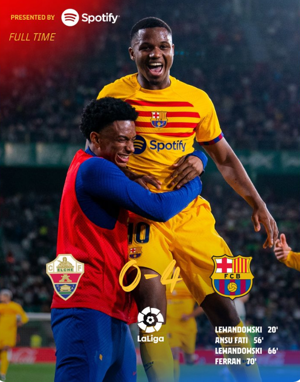 巴萨最终4-0大胜埃尔切。