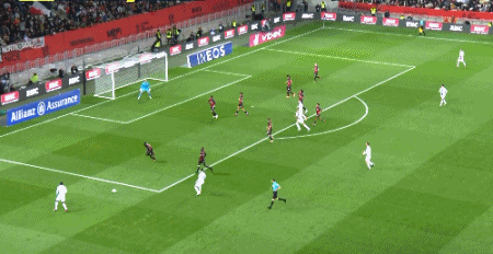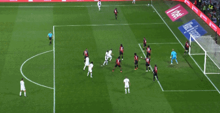 第50分钟,尼斯的左侧角球开到禁区后点,丹特争顶下第一点后转身扫射,皮球击中横梁后砸到门线上又击中立柱,巴黎球员上前倒钩解围。VAR显示,皮球只差一点点就整体越过门线了