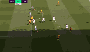 第32分钟,狼队在左侧路中,中路库里巴利头球解围至后点,狼队攻击手努内斯不停球,直接抽射破门,狼队1-0切尔西。