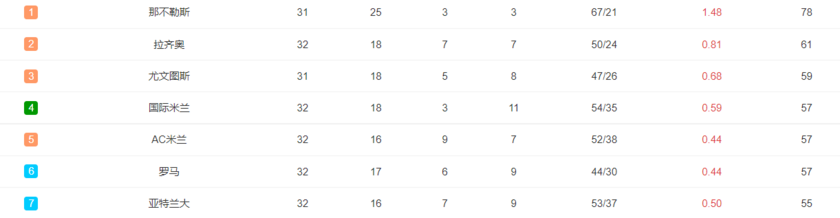 唯彩看球讯 意甲第32轮,国米主场3-1拉齐奥。本场比赛过后,国米积分57分,升至意甲第4。拉齐奥输球后,意甲2-7名积分分差仅6分。