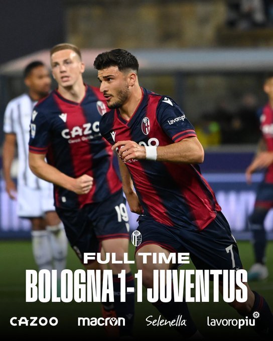 全场比赛结束,尤文在客场1-1战平博洛尼亚。