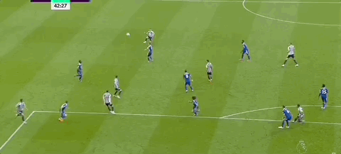 第43分钟,特里皮尔挑传禁区,威尔逊头球摆渡,阿尔米隆凌空打门打在立柱上,随后伊萨克补射打高了。