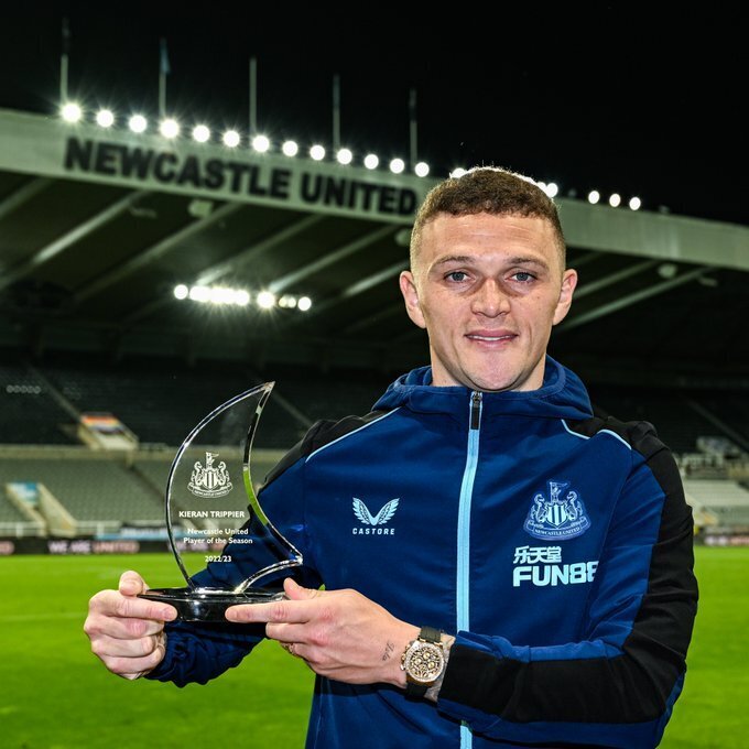 纽卡官推称赞特里皮尔为领袖球员,并对他获奖表示祝贺。