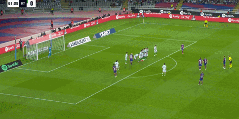 第62分钟,费兰主罚前场定位球,皮球从右侧绕过人墙弹地后直窜网窝,巴萨3-0!