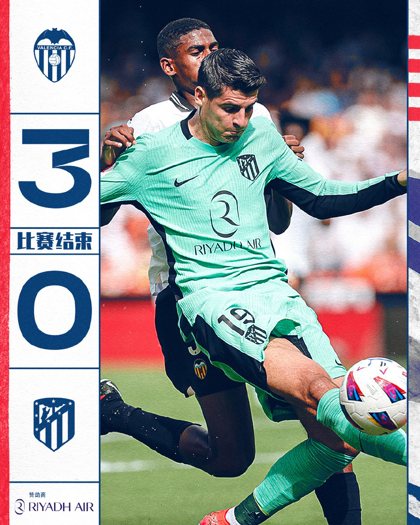 唯彩看球讯 北京时间9月16日晚,西甲第5轮,马竞客场挑战瓦伦西亚。上半场杜罗梅开二度,下半场,格拉世界波破门,最终马竞客场0-3惨败瓦伦西亚。