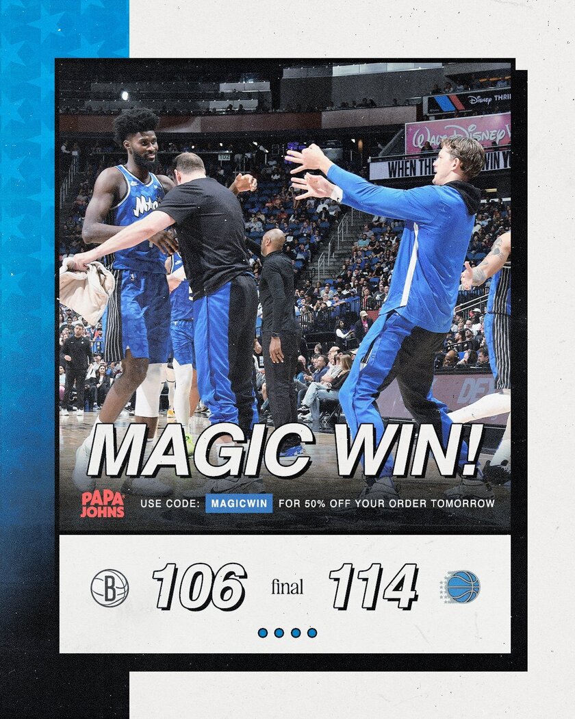 比赛上来,魔术就率先进入状态打出12-2的完美开局,整个第一节篮网三分9中0仅拿到16分,次节篮网的进攻终于调整过来,单节砍下38分后将分差缩小回个位数,半场结束时魔术领先7分;下半场回来,魔术重新占据了场上的主动权,分差也再次来到十分以上,篮网在末节没有再获得机会,最终魔术轻取篮网结束连败。