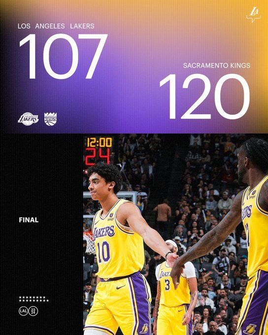 此役开打后里夫斯手感滚烫连中三分,单节他独得13分率队占优,八村塁内线续上火力,国王这边多点开花及时回应,双方比分紧咬陷入僵持,两队战成29平结束首节争夺,次节回来,双方继续鏖战,詹姆斯和浓眉手感不佳,但里夫斯和八村塁内外结合不断取分,基根-穆雷外线火热对飚,末段国王连续发力后来居上,半场战罢,国王反超4分。易边再战后湖人进攻依然停滞,国王延续火力一波10-2拉开比分,三节结束后国王已经领先15分,末节上来,詹姆斯和浓眉连续取分率队缩小分差,但国王总能给予回应,双方分差始终保持在两位数,湖人逆转未果,最终国王120-107击败对手实现赛季横扫。