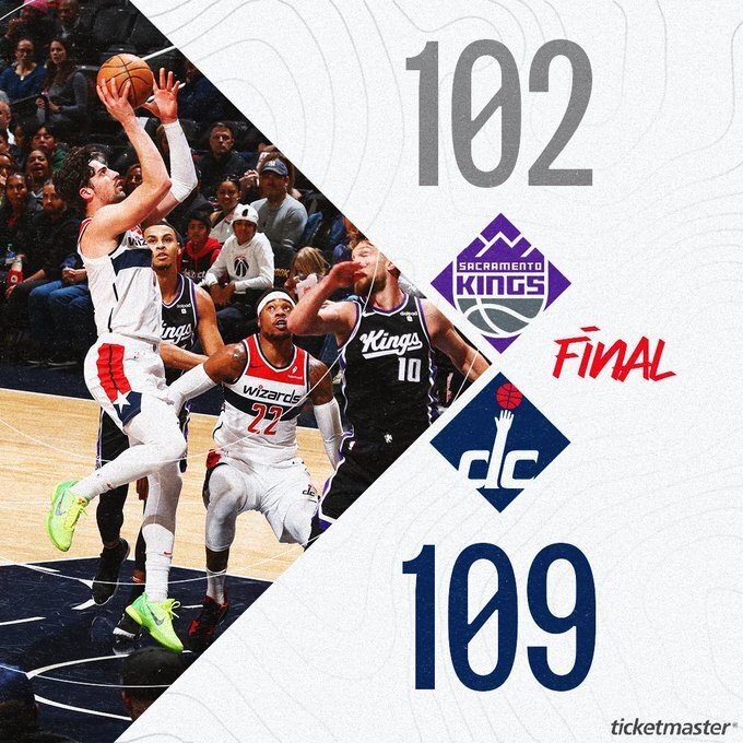 比赛开始,双方开场势均力敌,比分交替领先,奇才持续发力占据主动,次节更是将优势扩大到两位数,前9投0中的福克斯及时调整,连中三分帮助球队轰出18-0的进攻高潮一度扳平比分,半场战罢国王54-56落后2分。易边再战,奇才续上火力,内外开花一度获得16分优势,国王及时回暖连续拿分止住颓势,末节国王持续发力完成反超,此后双方争夺陷入白热化,关键时刻奇才持续发力保持优势,国王苦苦追赶无果。最终,奇才击败国王,结束5连败。