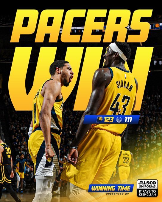 首节开局勇士多点开花以11-4抢开局,不过步行者也很快进入状态迅速追上比分,上半场双方外线手感都不错均命中10+的三分球,勇士凭借着火热的三分球一度在第二节前半段确立起12分的领先;步行者则在随后回敬4记三分,包括哈利伯顿最后超远三分在内追至1分进入下半场。休息归来双方僵持半节时间后步行者突然开火轰出20-6的攻势一举拉开两位数领先,末节库明加连续拿分带队打出8-2的攻势追至7分,不过步行者没有再犯错迅速拿分稳住局势守住胜利。最终,步行者客场击败勇士拿下比赛。