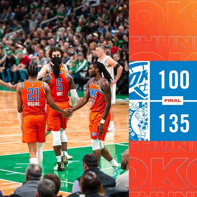 首节之争绿军全主力面对雷霆半主力阵容前期占不到任何便宜,他们一直到末段进入轮换后依靠阵容厚度送出一波11-2的攻势拿到主动权;次节开局绿军再接再厉再送13-6的攻势将分差拉大至14分并奠定半场14分的领先。休息归来雷霆几次组织反扑缩小分差但都无力阻止对手,第三节雷霆轰下36分但也丢了32分导致分差依旧维持在10分左右;末节开局绿军彻底接管比赛,布朗连砍10分带队轰出25-7的攻势直接将分差拉大至28分锁定胜局。最终,凯尔特人主场轻取雷霆拿下比赛。