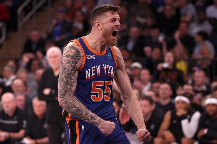 本场比赛,尼克斯中锋哈尔滕施泰因表现出色,多次通过抛投高效终结,出场30分钟8投7中,拿到14分8篮板4助攻4盖帽,正负值+1。