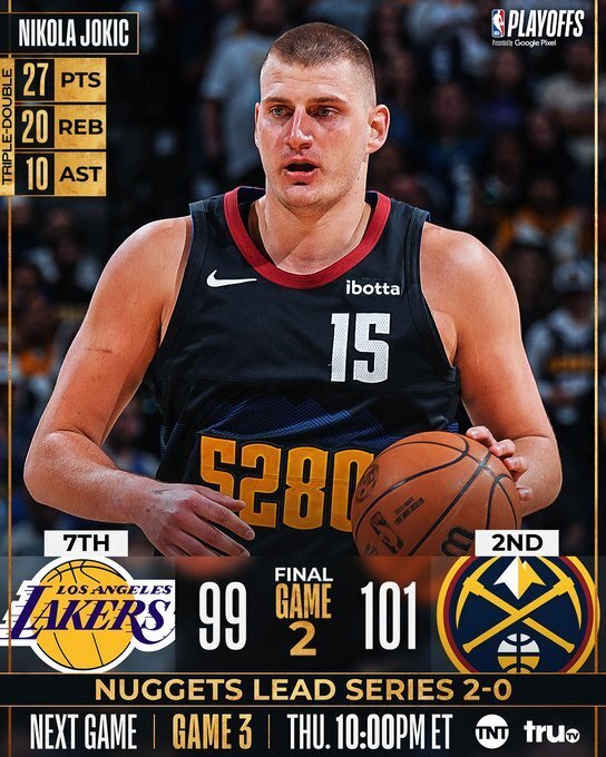 掘金(2-0):约基奇27分20板10助2断、波特22分9板2断、戈登14分7板3助、波普6分3助、穆雷20分3板5助、布劳恩10分2板