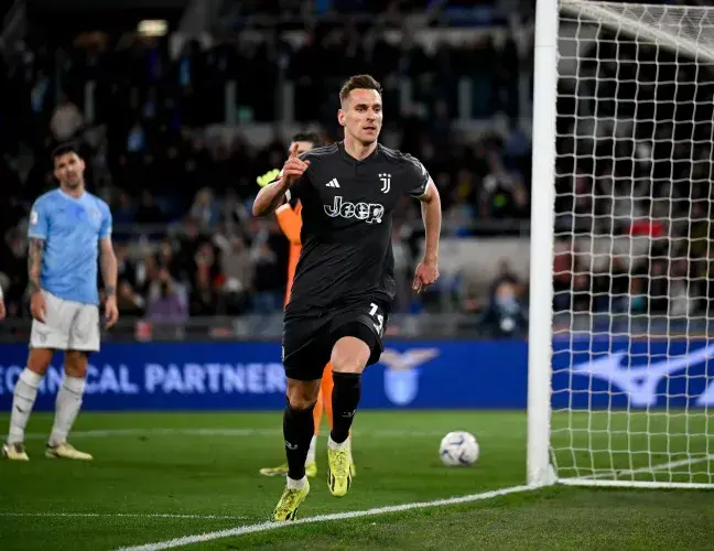 补时阶段,尤文图斯用阿尔卡拉斯替换下小基耶萨。随着终场哨声响起,尤文图斯虽然在客场以1-2憾负拉齐奥,但依靠3-2的总比分优势锁定决赛席位。