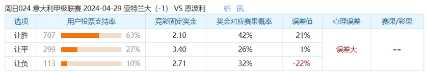 周日024 意甲 2024-04-29 亚特兰大(-1)VS恩波利