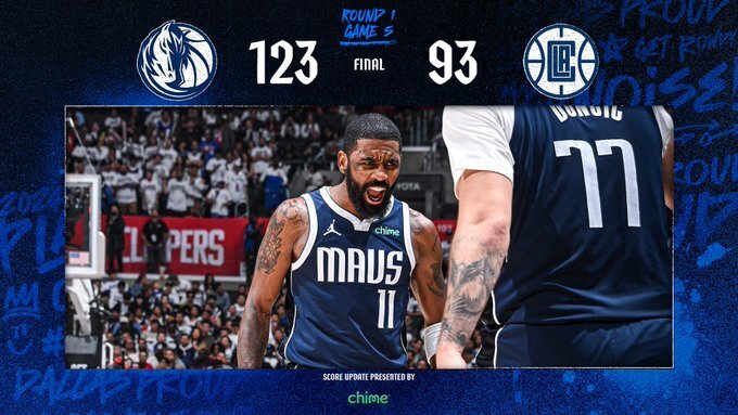 独行侠(3-2):东契奇35分7篮板10助攻1断,莱夫利12分7篮板,克莱伯15分3篮板,琼斯12分3篮板3帽,华盛顿2分5篮板,加福德8分5篮板,欧文14分4篮板6助攻2断,约什-格林4分2篮板1断,艾克萨姆4分4助攻,哈迪14分,劳森3分