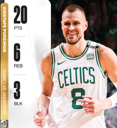 值得一提的是,波尔津吉斯上半场就拿到18分,首节更是独得11分。